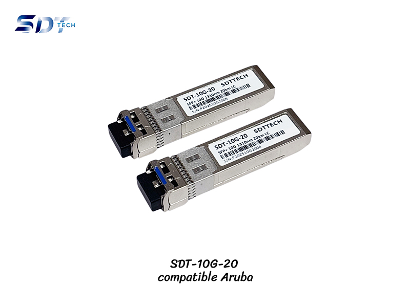 SFP+ LC DX-1310 10G DDM SM 20KM Compatible Aruba แบรนด์ SDT-TECH รุ่น SDT-10G-20 รองรับความเร็ว 10 Gigabit หรือ 10000Mbps หัวเชื่อมต่อไฟเบอร์ออฟติกแบบ LC รองรับสายไฟเบอร์ออฟติกชนิด Single-Mode ระยะรับส่งข้อมูลสูงสุด 20 กิโลเมตร ใช้งานได้กับอุปกรณ์สวิตซ์ Aruba, HP ติดตั้งง่ายไม่ต้องตั้งค่าใดๆ