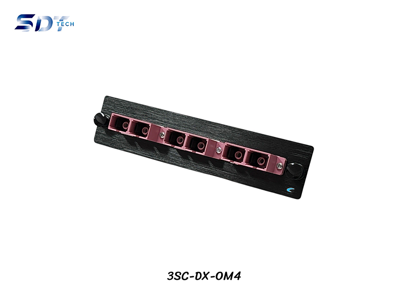 SNAP-IN Aluminum Plate 3SC Violet OM4 Duplex ใช้เป็นเพลทยึดพร้อม Adapter (ตัวต่อ) SC แบบ Duplex (Violet) จำนวน 3 ตัว เข้ากับ ODF Rack หรือ Terminal Box ที่มีขนาดจุดยึดตามที่เพลทกำหนด รองรับจำนวนไฟเบอร์ทั้งหมด 6 Core อุปกรณ์ผลิตจากวัสดุอลูมิเนียมทำสีดำอโนไดซ์ รองรับการใช้งานร่วมกับ ODF Rack หรือ Terminal Box ของ LINK